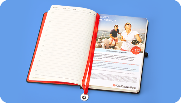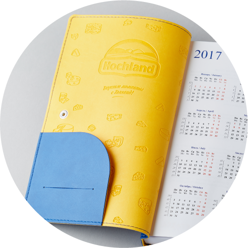 Удивите своих сотрудников и партнёров оригинальным ежедневником по индивидуальному дизайну. Креативный подход повысит маркетинговую эффективность, обеспечив хороший отклик.